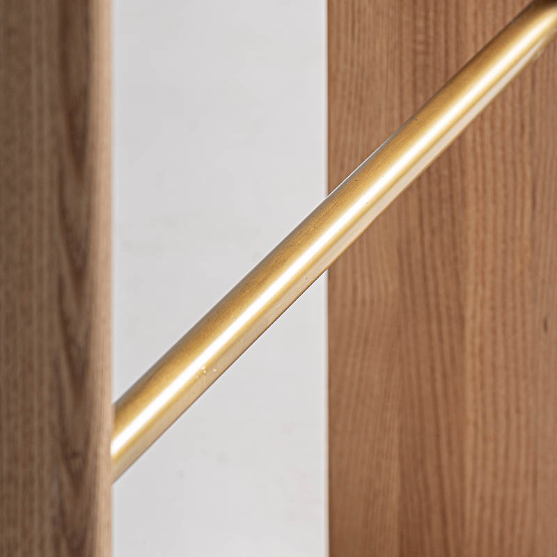 Taburete sernier de estilo contemporáneo fabricado en poliéster en color tonos en marrón combinado con madera roble en color marrón y hierro en color oro.