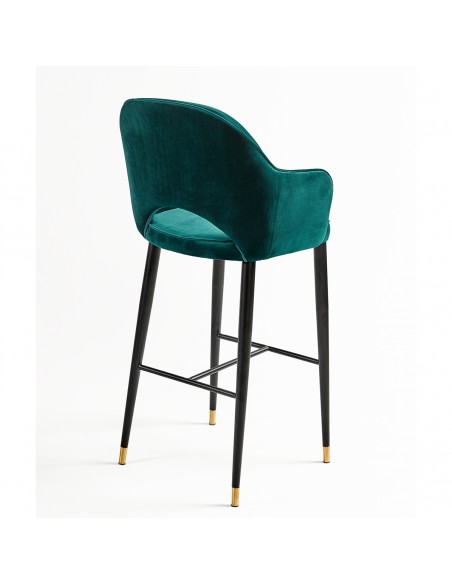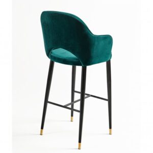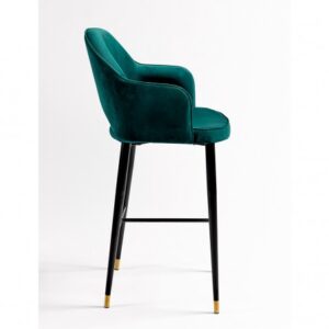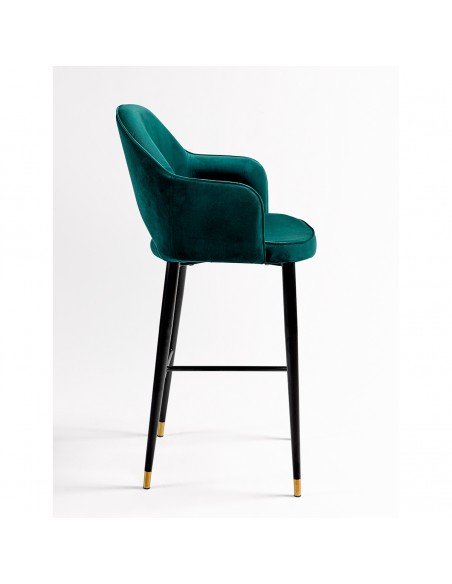 Fabuloso taburete tapizado en terciopelo verde, con patas de madera oscura acabadas en detalles en color dorado. Este taburete cuenta con reposabrazos y apoya pies. Y con un diseño ergonómico pensado para disfrutar del máximo confort en las largas veladas con familiares y amigos. Apuesta por incorporar este glamuroso taburete a tu estancia y consigue darle exclusividad en tu estancia.