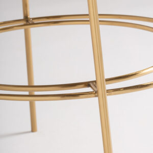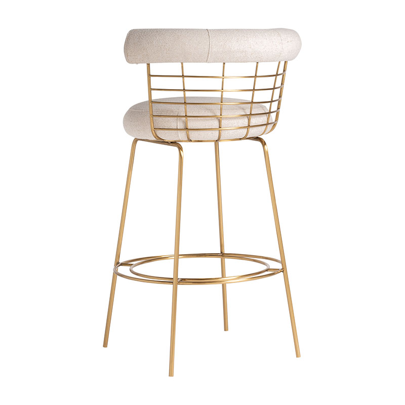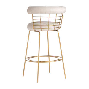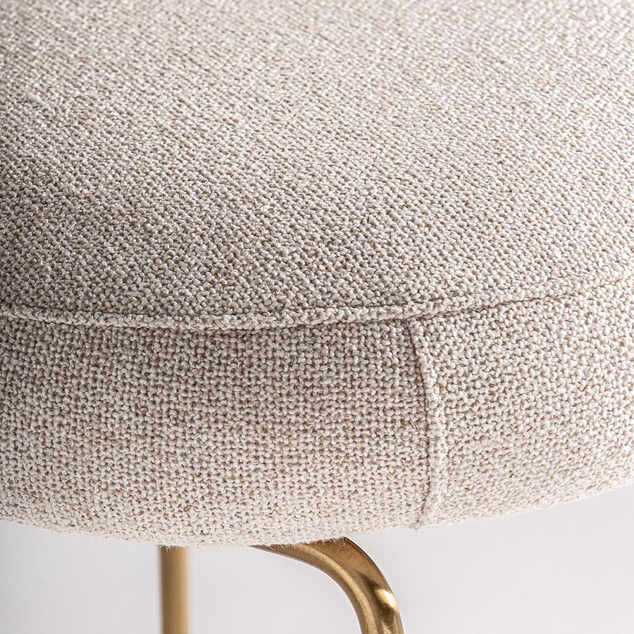 Taburete tresivio de estilo art deco fabricado en latón en color blanco roto combinado con lino y algodón.
