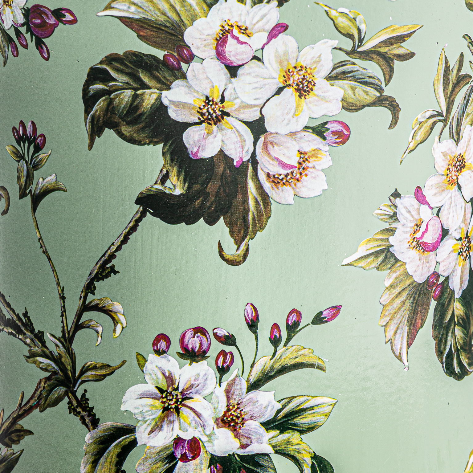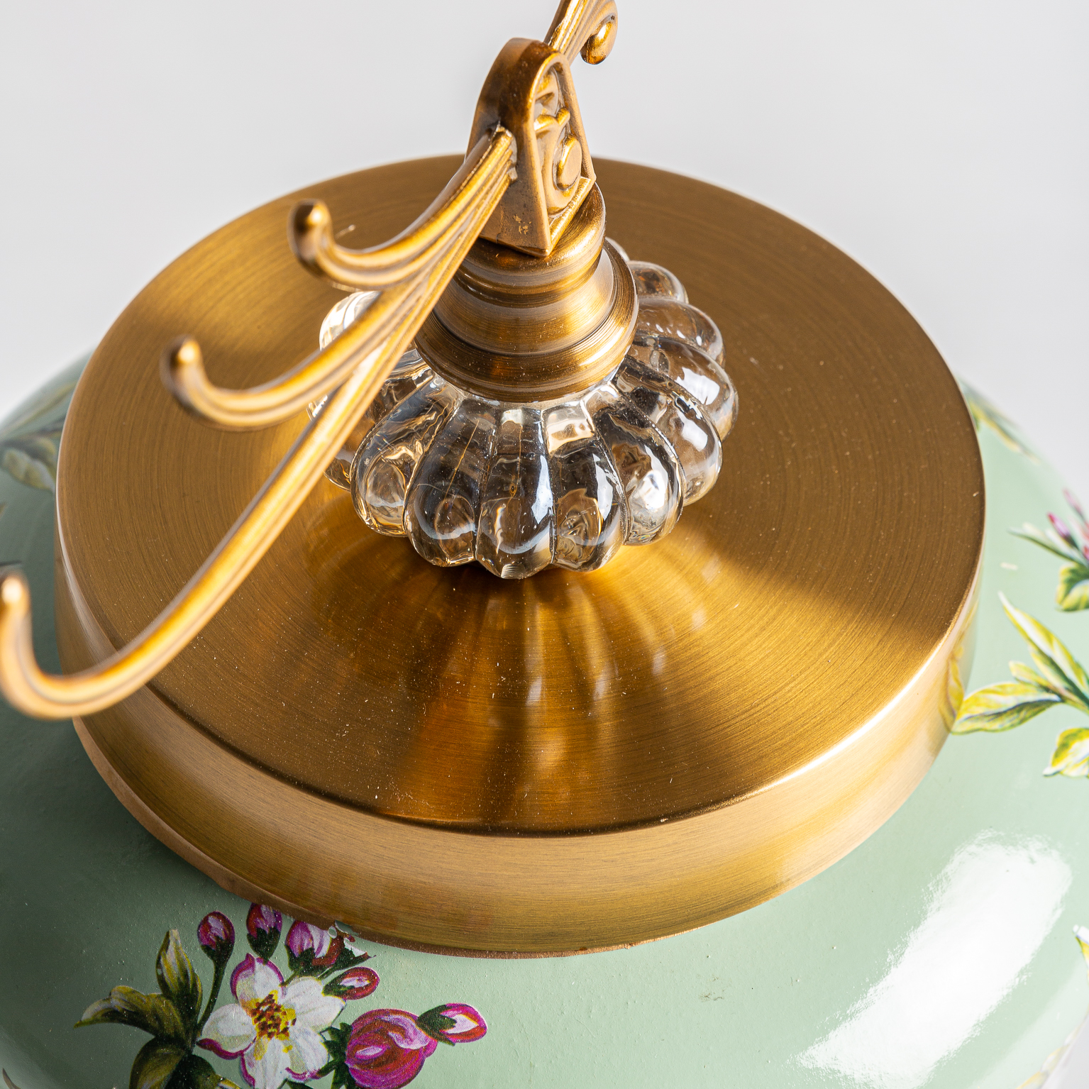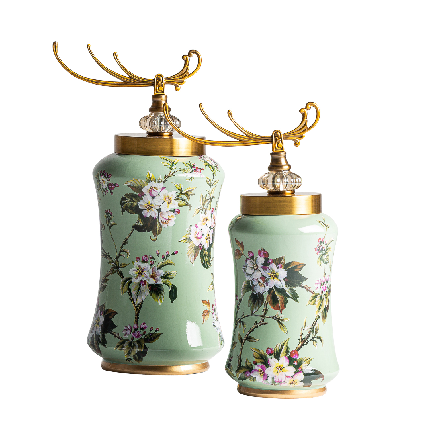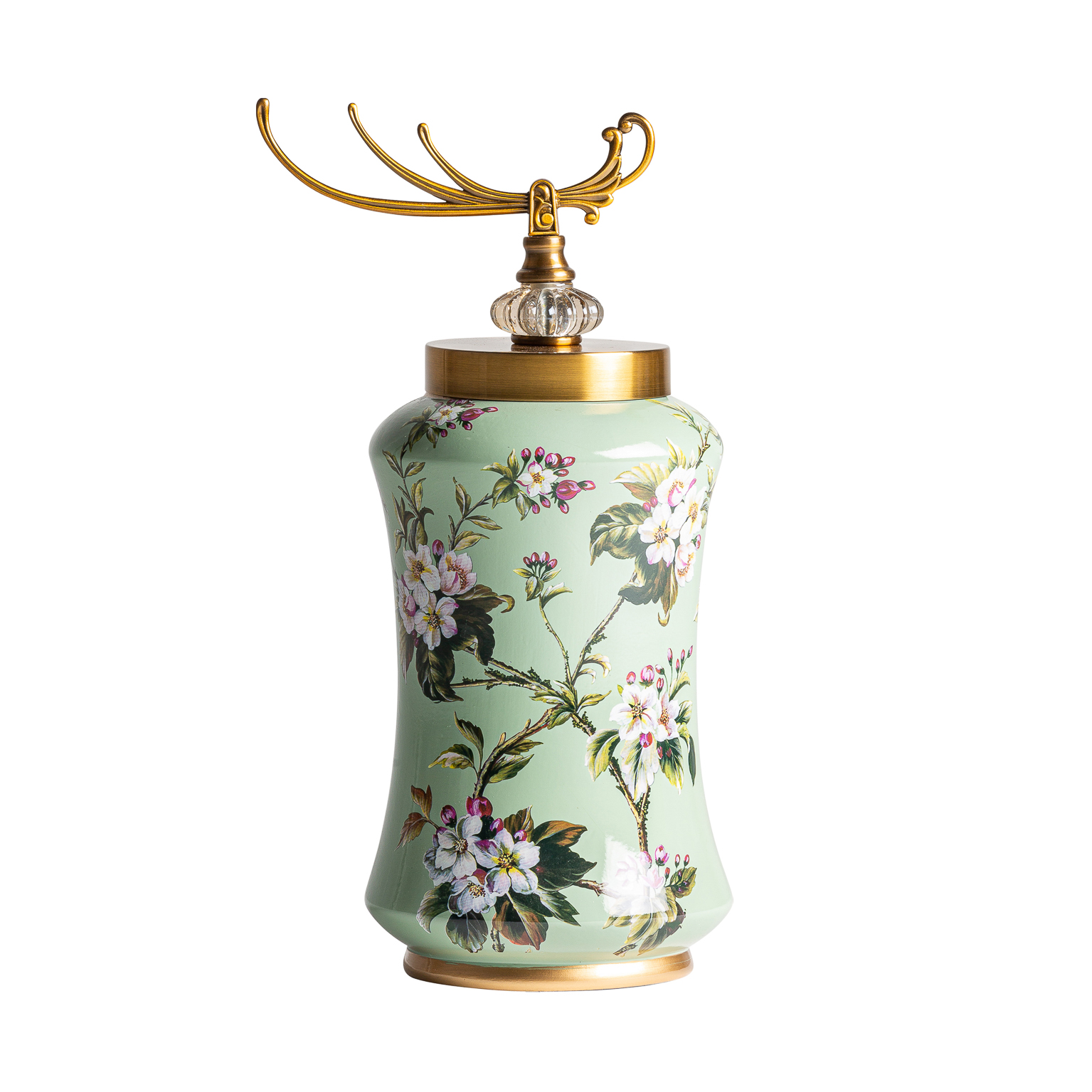 TIBOR CILINDRICO RUSLAN, EN COLOR VERDE PINTADO, DE ESTILO CLÁSICO. FABRICADO EN CERÁMICA.