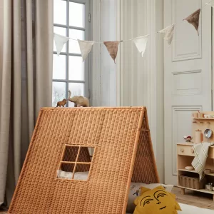 Crea un escondite para tus pequeños con esta carpa de juegos estética y decorativa. El ratán trenzado le da a la habitación de los niños una expresión orgánica y crea un lugar protegido para que los niños jueguen, lean y se relajen, mientras que las pequeñas ventanas permiten que su pequeño mire hacia afuera. El práctico diseño de embalaje plano facilita el almacenamiento cuando no está en uso.
