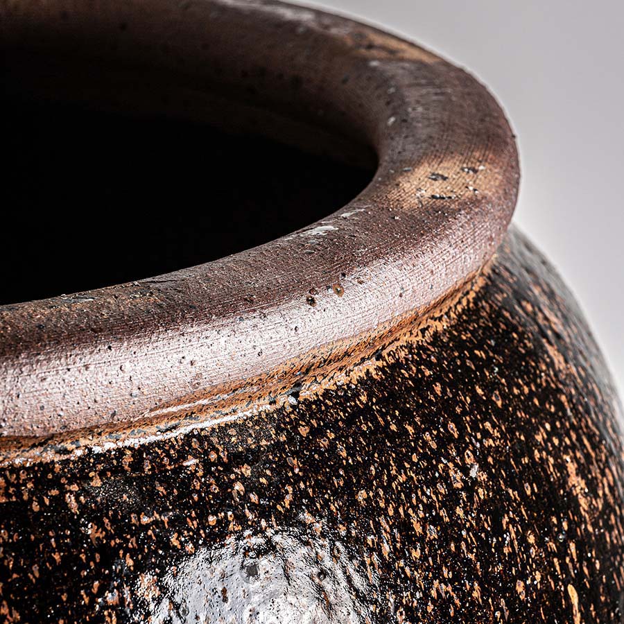 Tinaja Anquelina de estilo colonial fabricado en cerámica en color tonos en marrón.