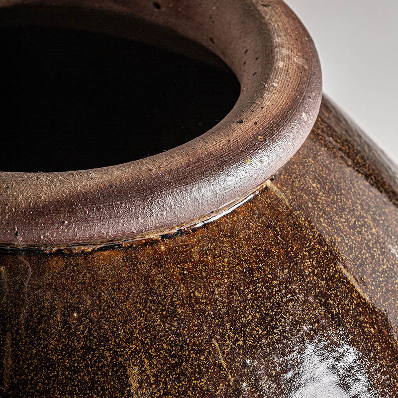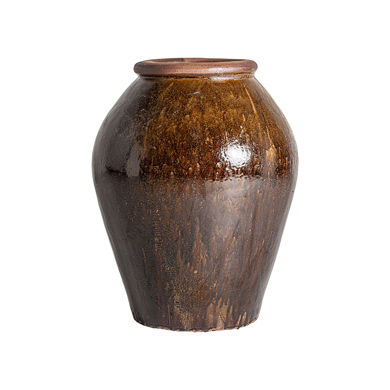 Tinaja cilindrica bukavu, en color marrón envejecido, de estilo vintage. Fabricado en cerámica.