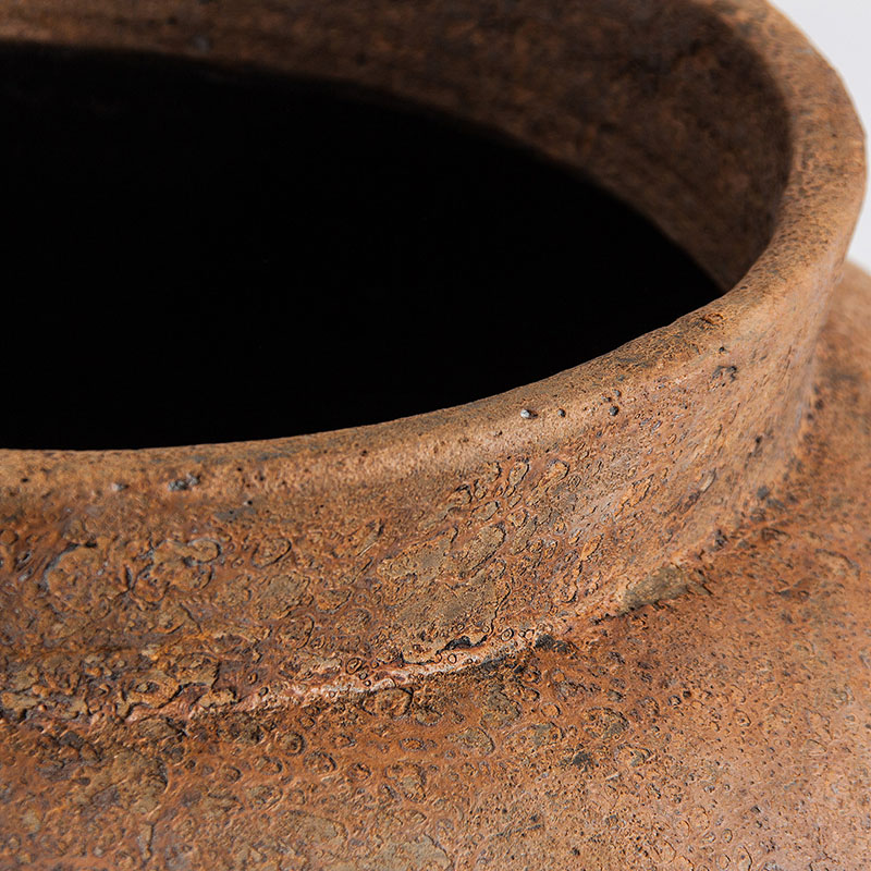 Tinaja Eride de estilo contemporáneo fabricado en terracota en color cobre con acabado envejecido.
