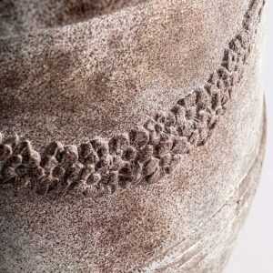 Tinaja reina de estilo contemporáneo fabricado en resina en color gris con acabado envejecido.