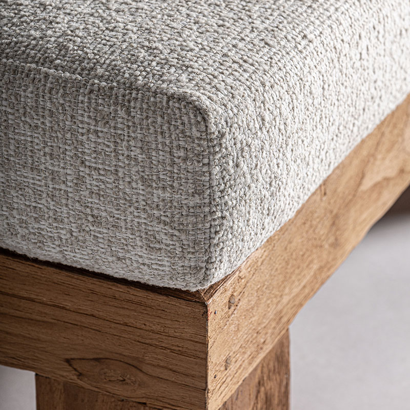 Módulo sofá central testa de estilo colonial fabricado en madera de teka reciclada en color marrón con acabado natural combinado con polipropileno reciclado en color tonos en marrón con acabado jaspeado y espuma. Producto desmontable desenfundable.