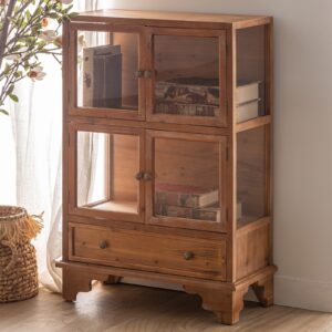 Vitrina armagh, en color natural, de estilo nórdico. Fabricado en madera de abeto, combinado con vidrio y madera dm.