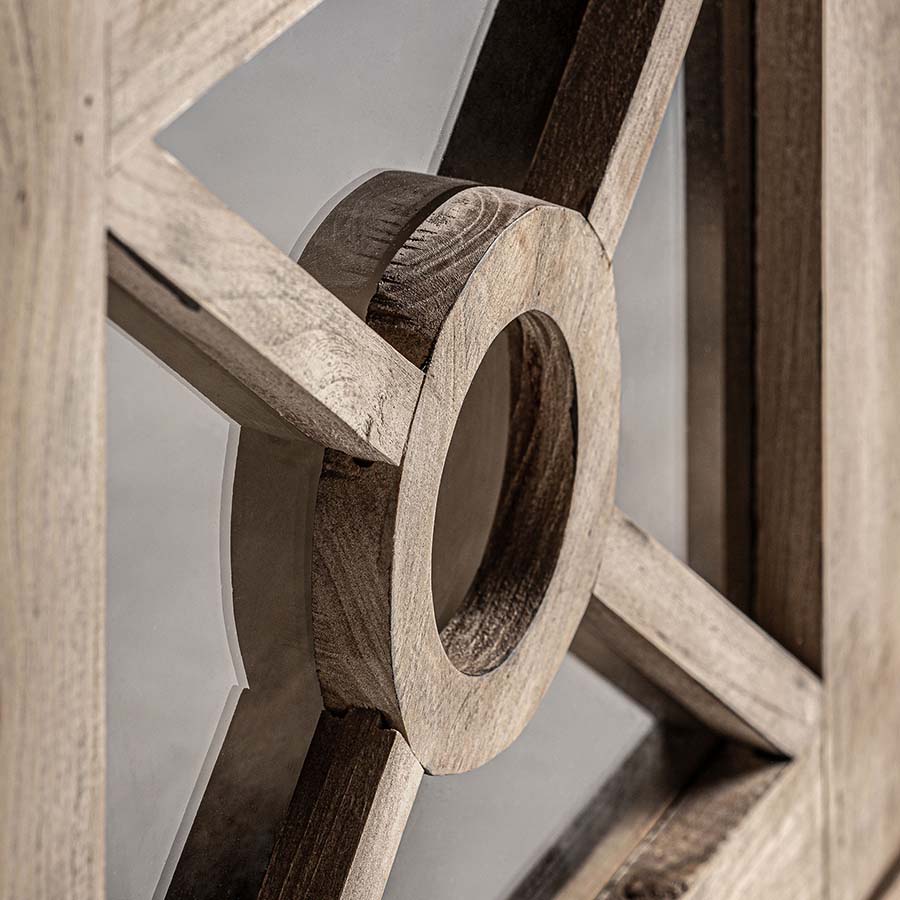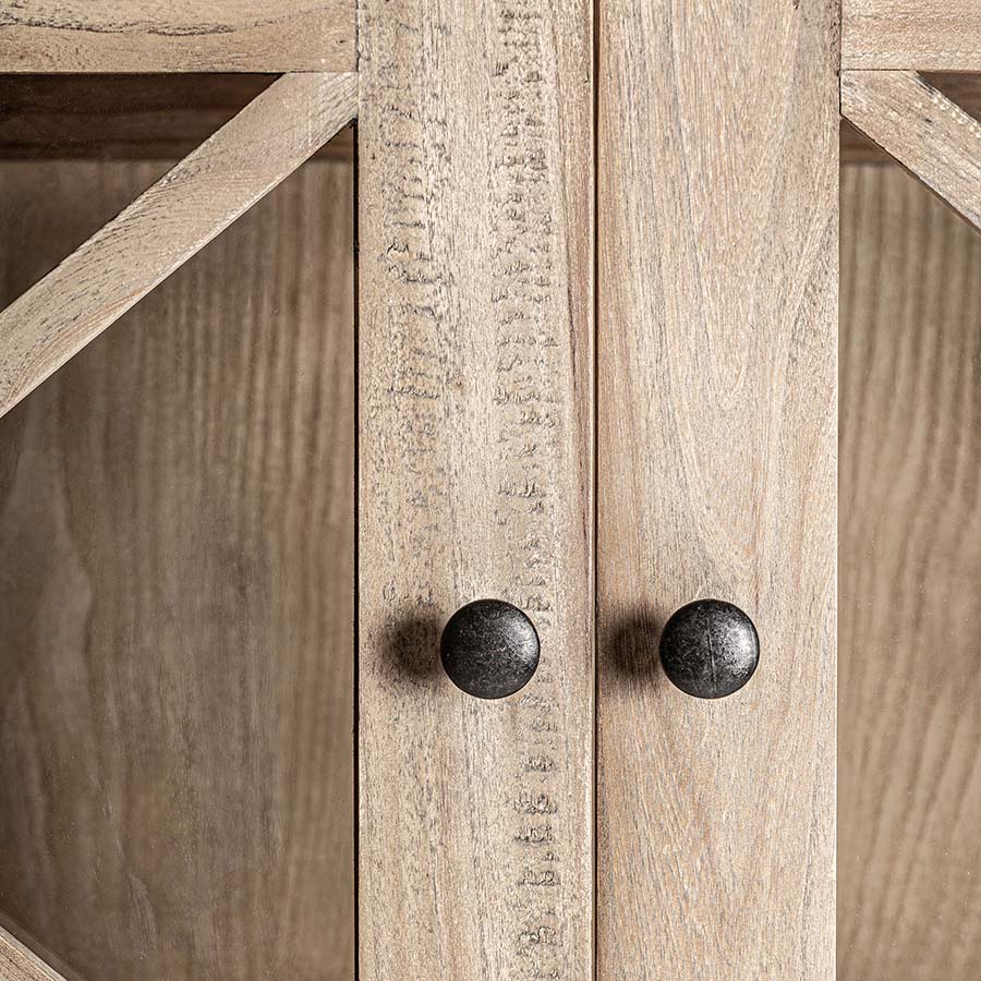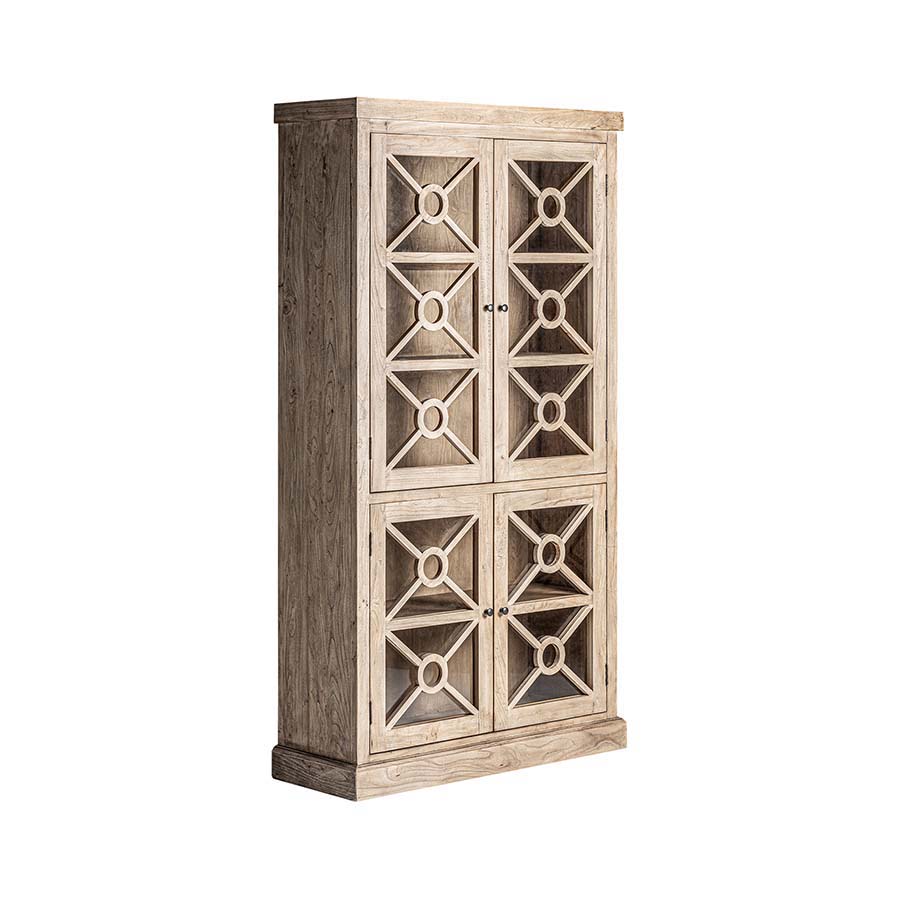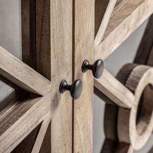 Vitrina gubin de estilo colonial fabricado en madera de olmo en color marrón.