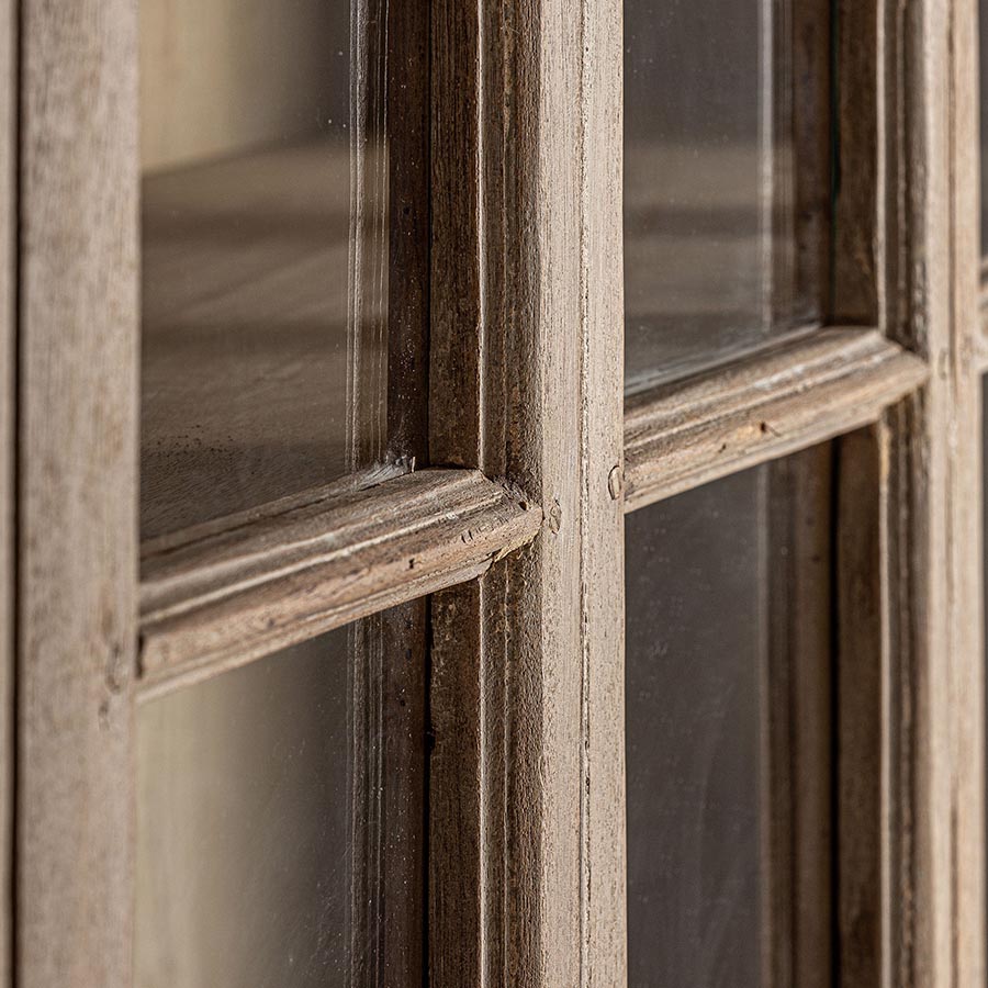 Vitrina Huntly de estilo colonial fabricado en madera de teka en color marrón claro con acabado natural combinado con cristal. Producto desmontable.