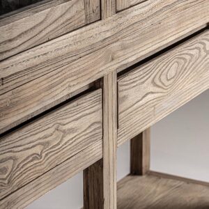 Vitrina Masein de estilo colonial fabricado en madera de olmo en color marrón claro. Producto apilable.