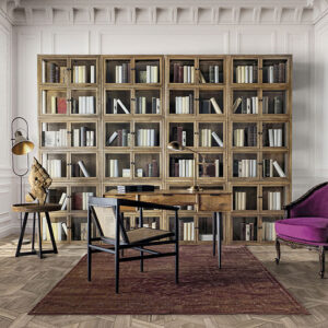 Vitrina modular Masein de estilo colonial fabricado en madera de olmo en color marrón claro.