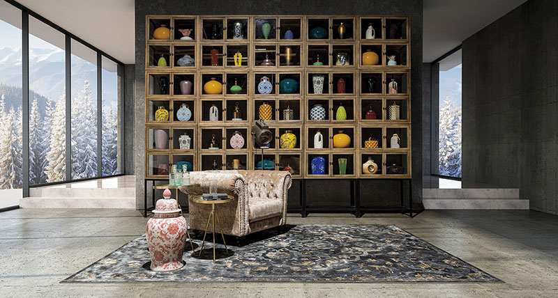 Vitrina modular Bern de estilo colonial fabricado en madera de olmo en color negro combinado con cristal en color transparente. Compatible con: 27009.