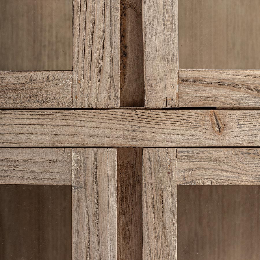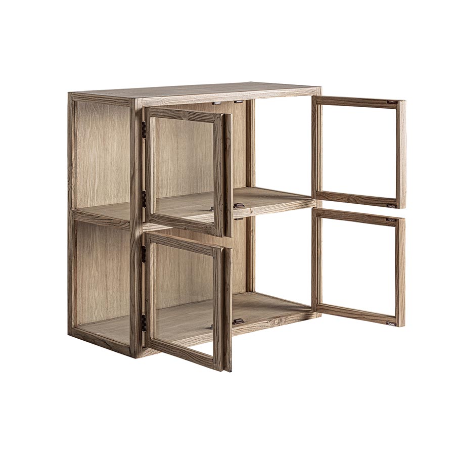 Vitrina modular Masein de estilo colonial fabricado en madera de olmo en color marrón claro.