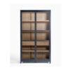 Vitrina de roble grisáceo, con estructura y tiradores en metal. Cuenta con doble puerta acristalada y dos baldas en el interior. Es una pieza de estilo depurado, con gran capacidad de almacenamiento. Perfecta para incorporarla en espacios de estilo rústico o industrial.