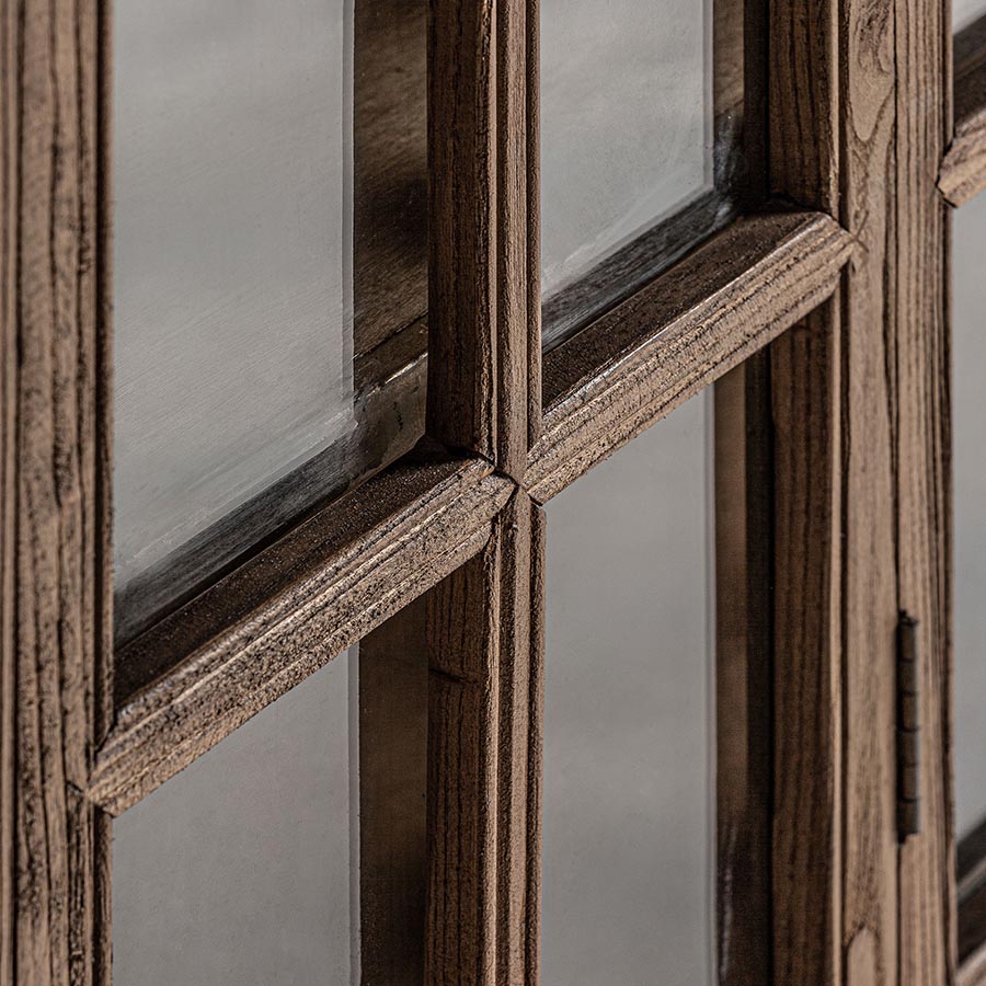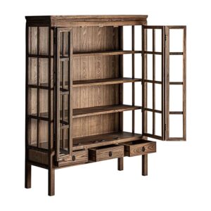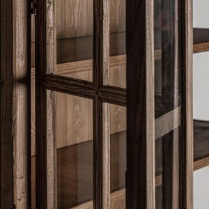 Vitrina Tartu de estilo colonial fabricado en madera de olmo en color marrón.