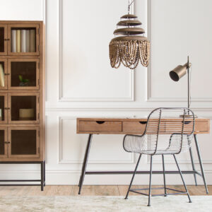 VITRINA TYLER, EN COLOR NATURAL/PLATA ENVEJECIDO, DE ESTILO COLONIAL. FABRICADO EN MADERA DE ABETO, COMBINADO CON HIERRO Y DM. PRODUCTO DESMONTABLE.