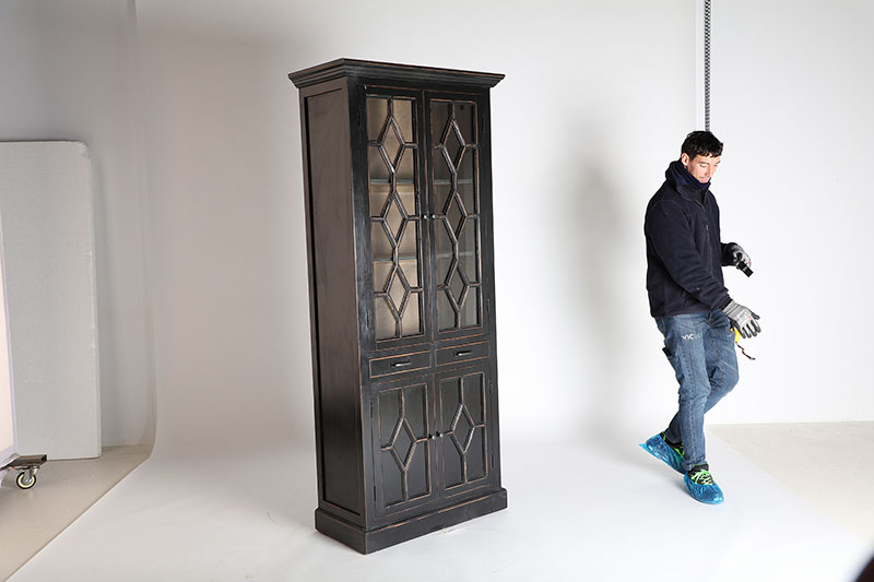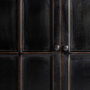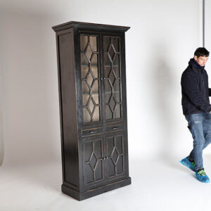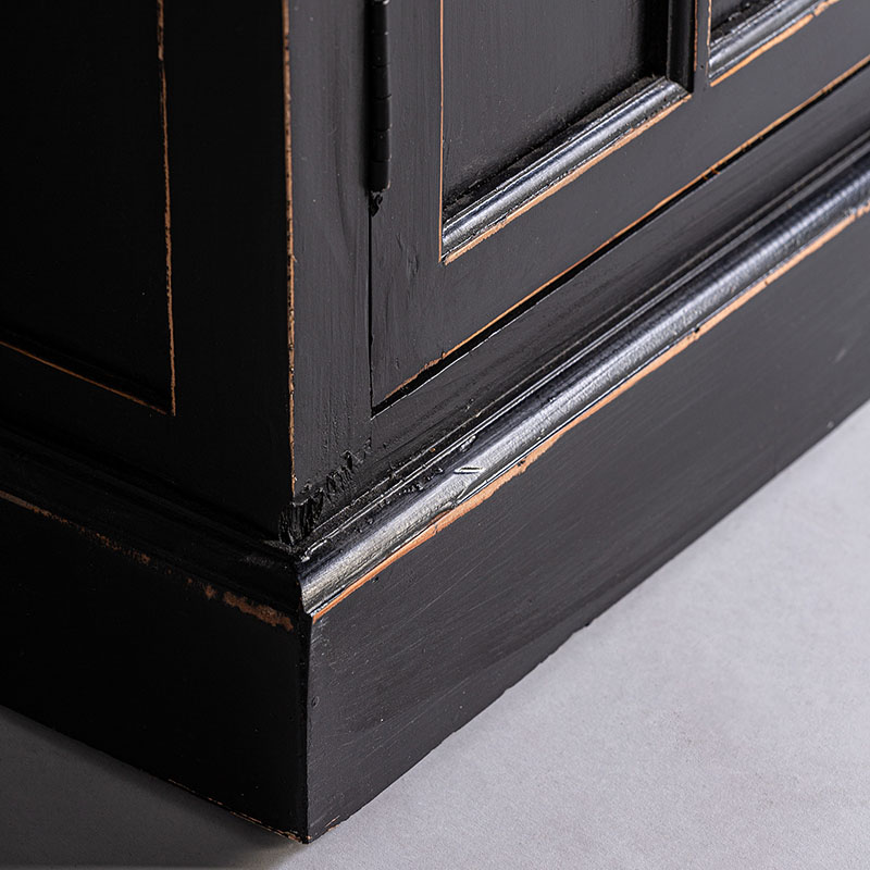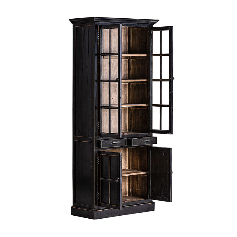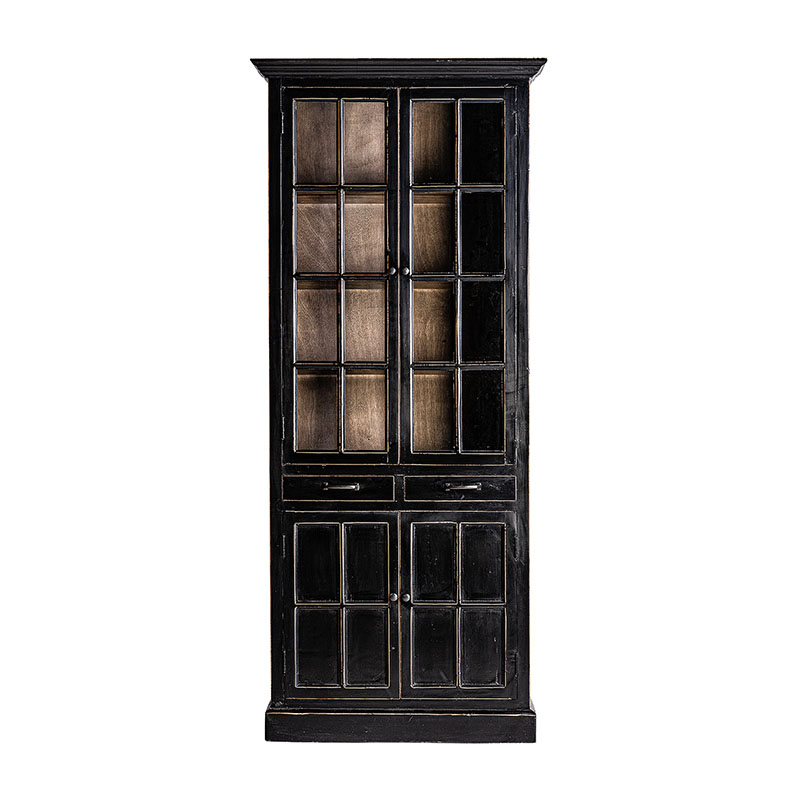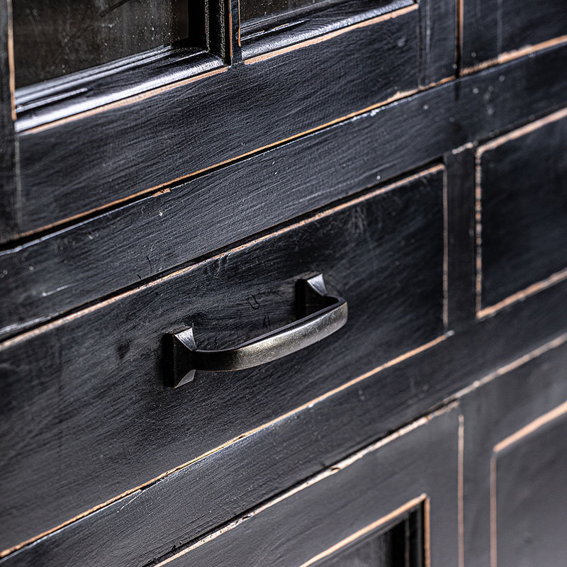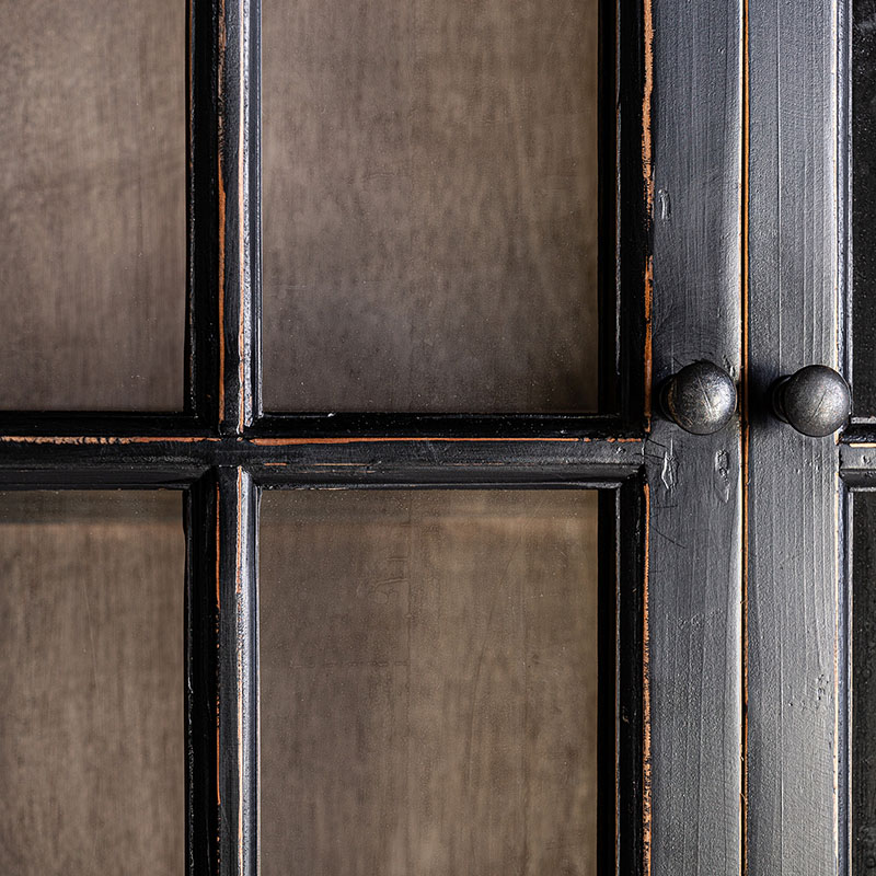 Vitrina Zenica de estilo provenzal fabricado en madera de olmo en color negro combinado con cristal en color natural.