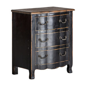 Mesita de noche Zenica de estilo provenzal fabricado en madera de pino en color negro en color natural.