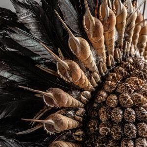 FIGURA DECORATIVA Figura decorativa de estilo étnico fabricado en fibra natural en color marrón combinado con concha. Producto desmontable. Producto de: